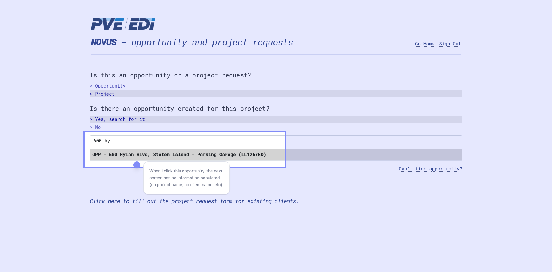 All of the information input for the opportunity request is missing when creating a project request (using the search opportunities).